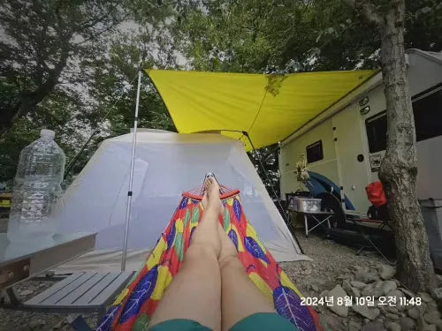 "Just tried this hammock on a weekend camping trip. OMG, it's soooo comfy and the mosquito net is a lifesaver. Super easy 2 pack n go. Never been a fan of insect bites but I slept like a baby. Perfect for a cozy stargazing night out. Definitely recommend for any outdoor lover.👏🌟"